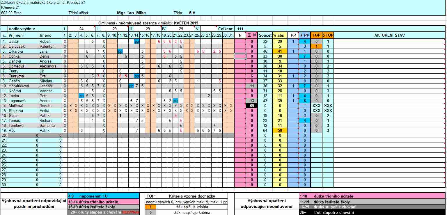 Absenci neomluvili: k 22/1/2015